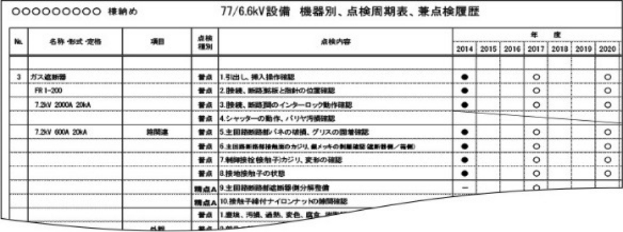 電気設備納入後は、安全・安心に使用していただくために、定期的な点検をおすすめします。使用環境によっても設備の状況は異なるため、点検結果に応じて必要な部品交換や修繕などを提案します。当社は周期ごとに実施内容の違う点検を推奨しています。