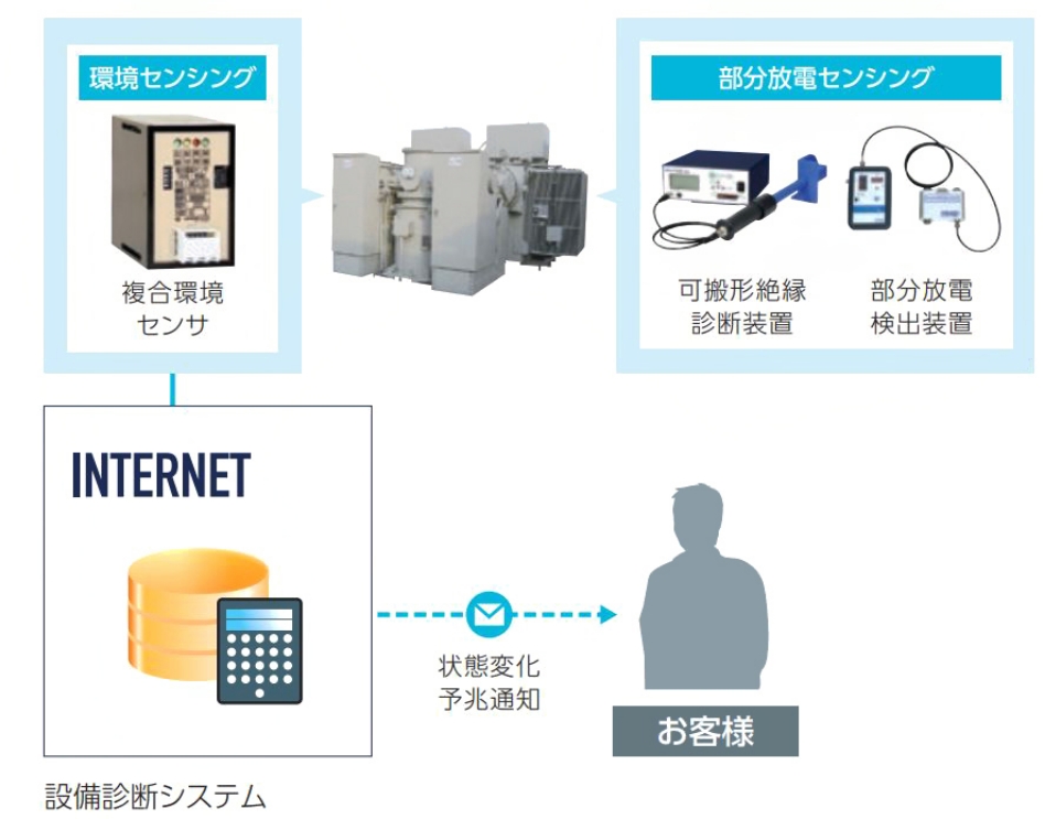 停電が必要な点検作業以外にも、診断設備を用いた部分放電検出や過熱診断など停電を伴わない設備診断も実施可能です。劣化予兆や異常を事前に発見することで、故障や事故を防ぎます。